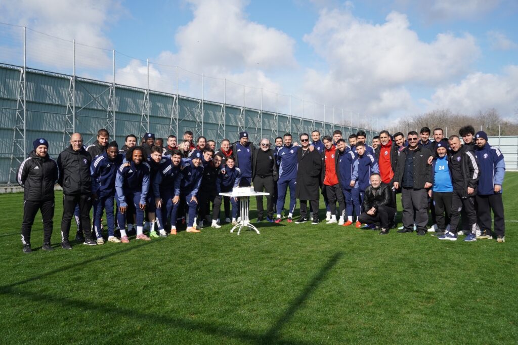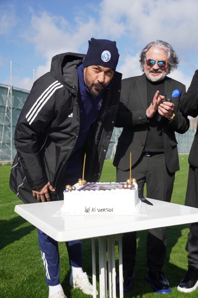 Ziyaret sırasında teknik direktör Servet Çetin için düzenlenen doğum günü kutlamasına da iştirak eden Kanat, pasta kesiminin ardından Çetin’e yeni yaşında başarılar diledi.
