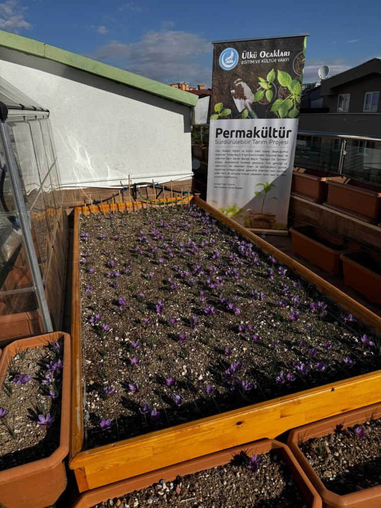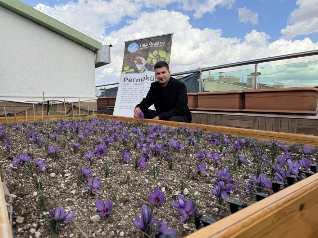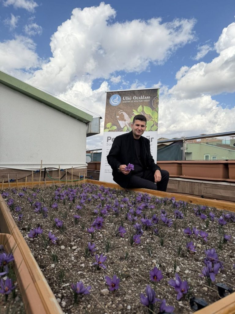 Ülkü Ocakları Genel Merkez binasının çatısında renkli görüntüler oluştu. Ülkü Ocakları, binanın terasında safran yetiştirdi.